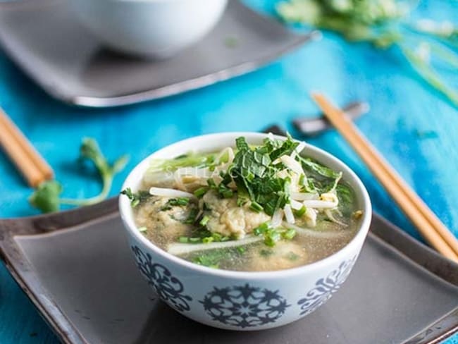 Soupe de boulettes de poulet façon pho de la cuisine vietnamienne ...